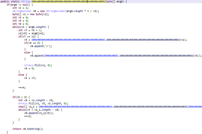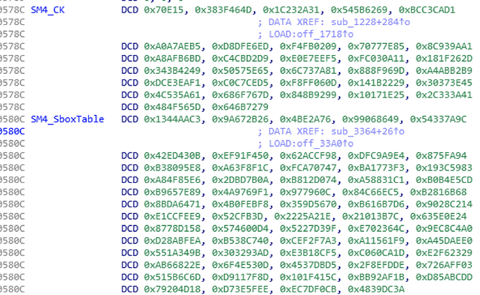 该函数流程已经被高度混淆,可以有选择的对其调用的子函数进行断点跟踪(需要注意apk的断点扫描检测,发现断点会直接崩溃),根据动态调试的数据分析并识别出重点函数sub_1228(变异SM4算法ECB模式),sub_DA4(变异base91算法)。分析出SM4魔改的数据如下: